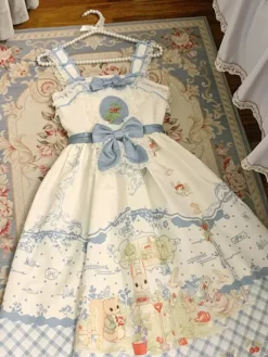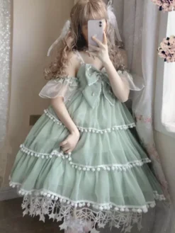 Sweet Lolita Dress Small Ice Cream Three-stage Solid Pearl Bows Sleeveless Lolita JSK Dress