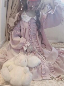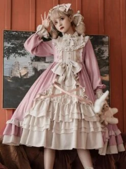 Sweet Lolita OP Dress Ruffles Bows Long Sleeves Pink Tea Party Lolita One Piece Dresses