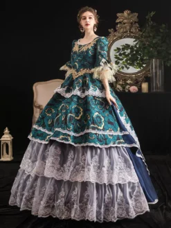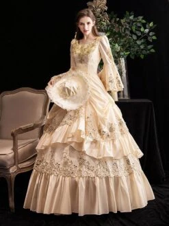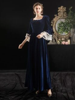 White Retro Costumes Flared Sleeve Off The Shoulder Victorian Vintage Maxi Dress Halloween