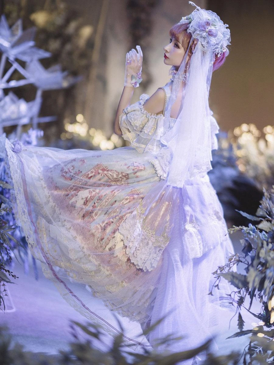 | Components | Dress, Bowknot, Oversleeves, Cover-Up | Style | Lolita Wedding Dress |