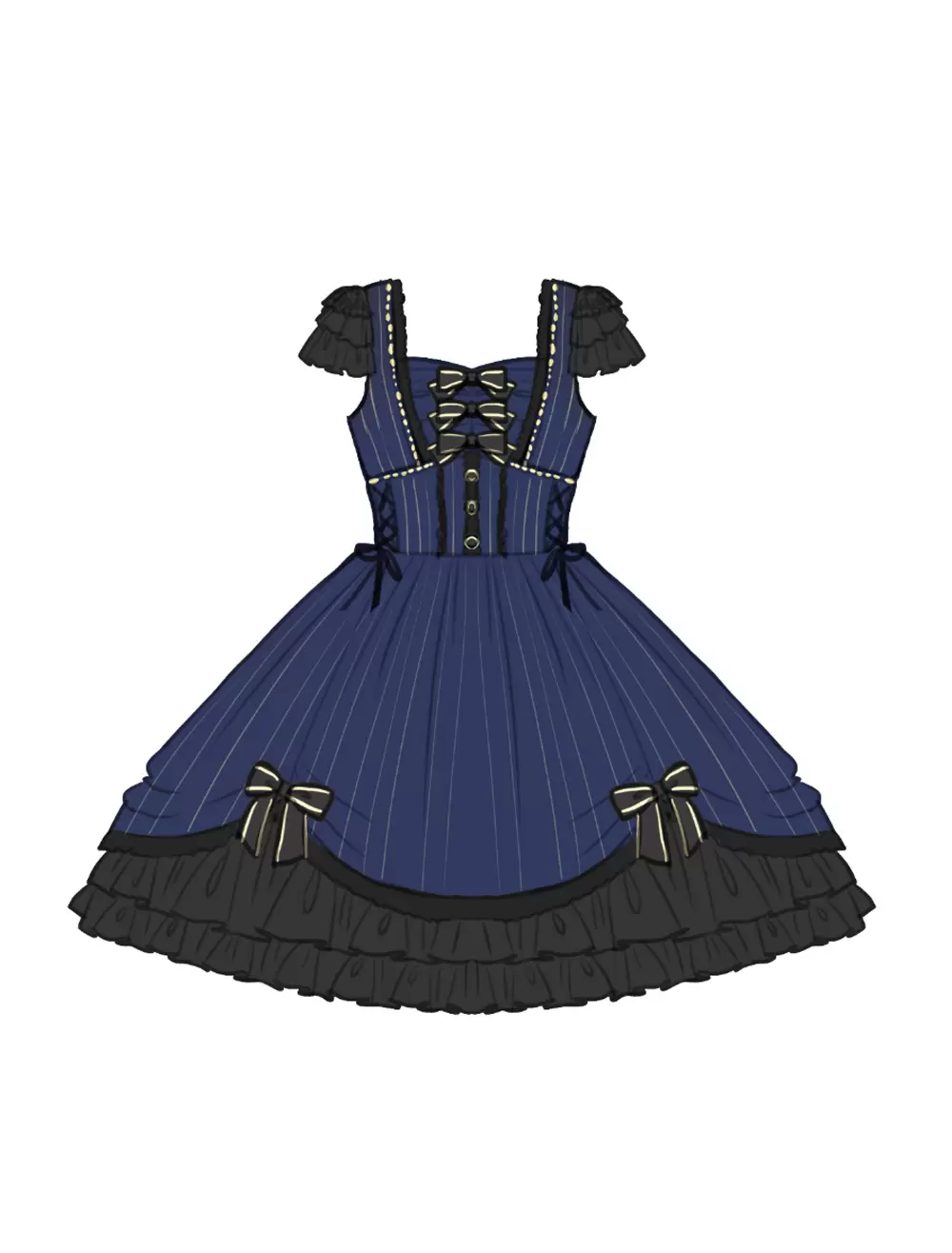 Be the first to review “Lolitashow Exclusive Gothic Lolita Dresses Ruffles Bows Lace Stripes Blue Daily Casual Dress” Cancel reply