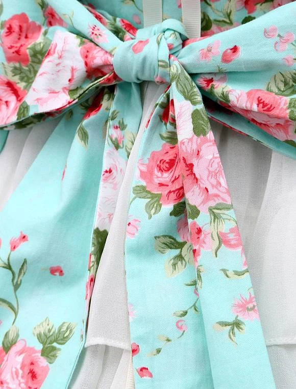 This ocean blue floral print loliya dress is designed by Milanoo designer, crafted in high end cotton fabric, it is worth buying. Unique tiered skirt hemline embellished with romantic white chiffon ruffles that adds glamour. Back lace up design makes sure the shirt is suitable for any body type.