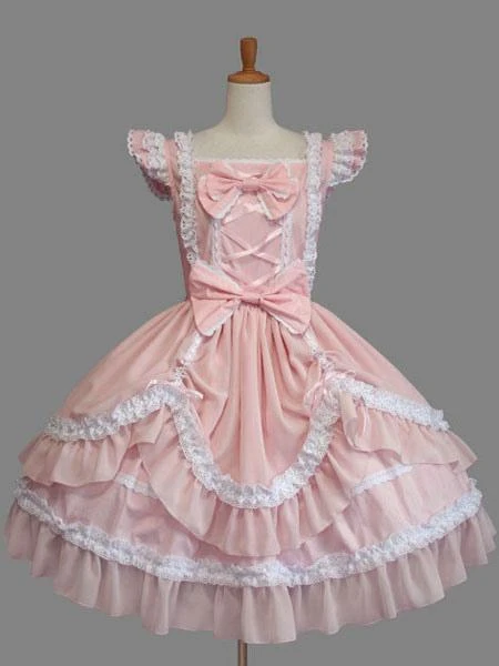 Be the first to review “Lolitashow Sweet Lolita Dress Pink Cotton Bow Lace Ruffled Cap Sleeve Lolita One Piece Dress” Cancel reply