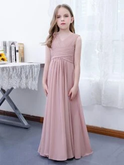 Be the first to review “Lotus Pink Flower Girl Dress Chiffon Pleated V-Neck Sleeveless Kids Birthday Party Dresses” Cancel reply