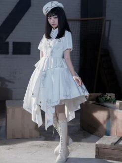 Be the first to review “Military Style Gothic Lolita OP Dress Side Draping Short Sleeve White Lolita One Piece Dress” Cancel reply