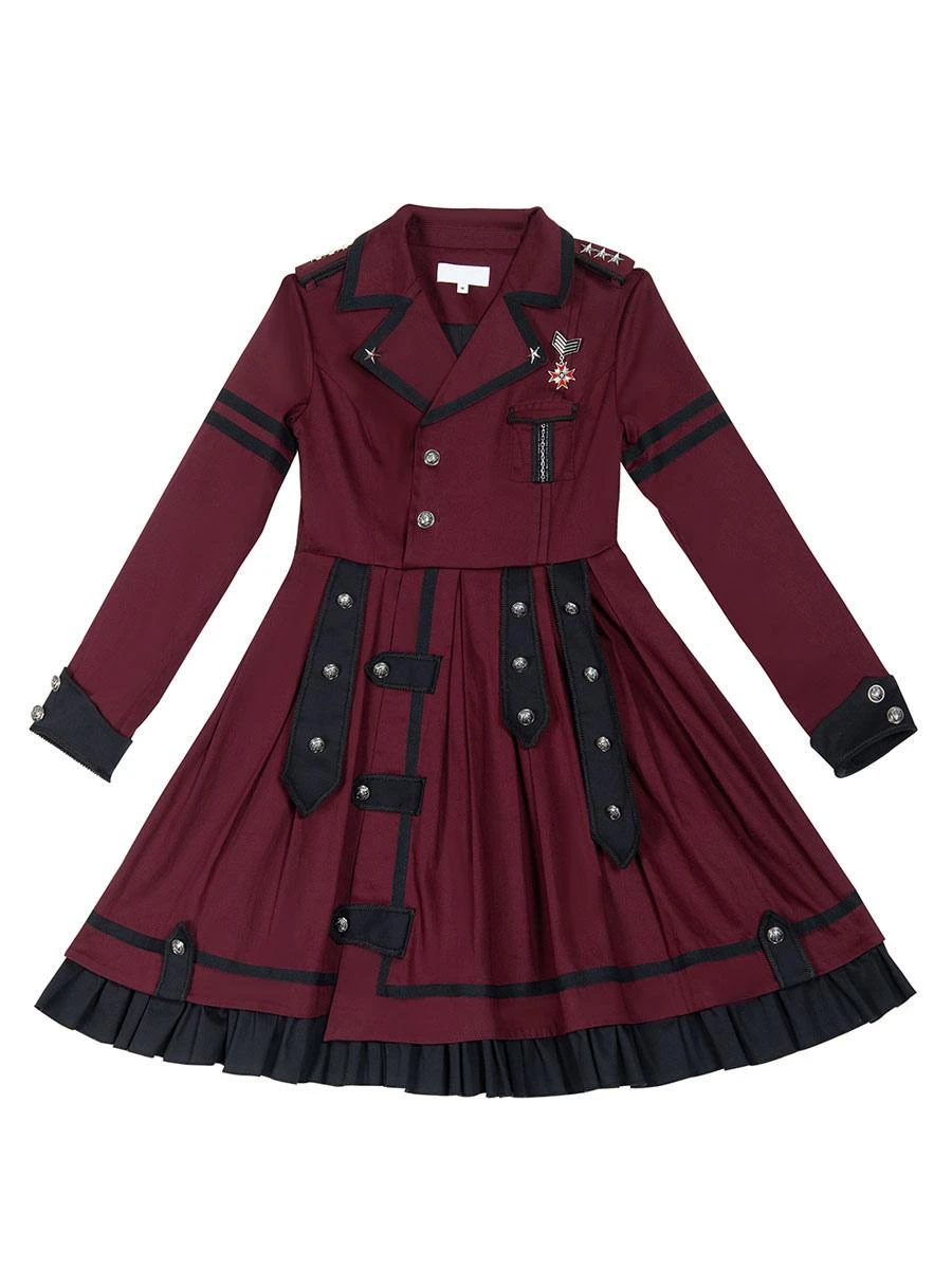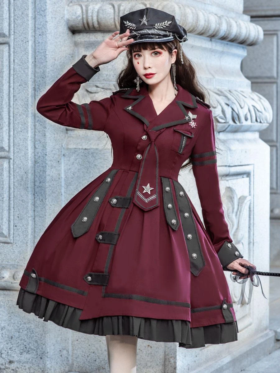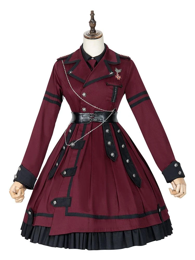 Be the first to review “Military Style Lolita OP Dress Burgundy Long Sleeves Chains Ruffles Academic Lolita One Piece Dresses” Cancel reply