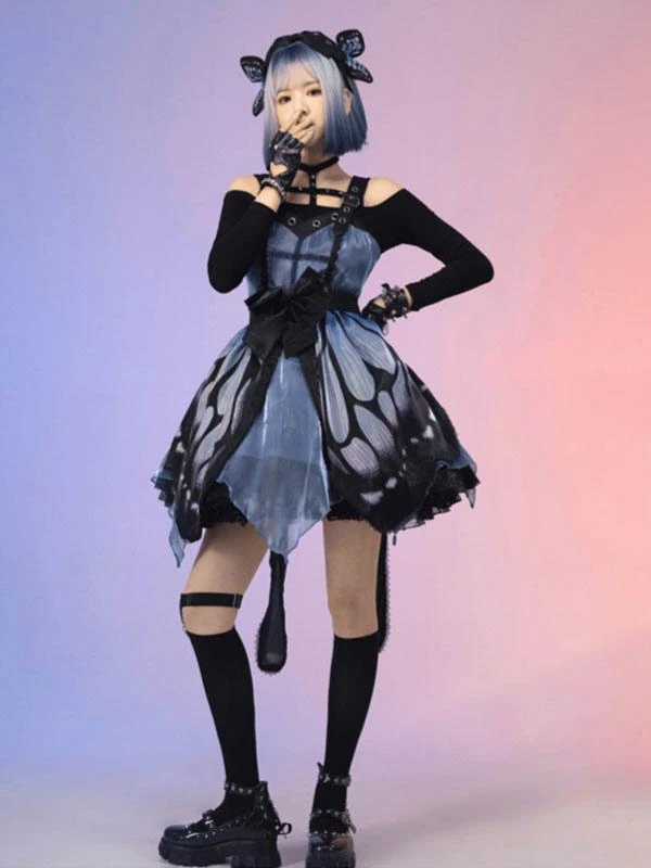 Be the first to review “Punk Gothic Lolita JSK Dress Butterfly Sleeveless Bows Blue Lolita Jumper Skirt” Cancel reply