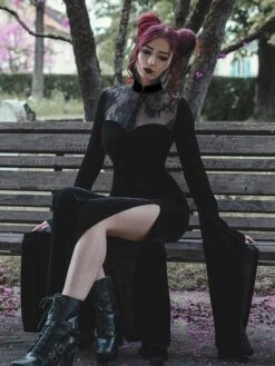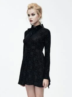 Black Gothic Dress Long Seelves Lace Stand Collar Lace Lolita Dress