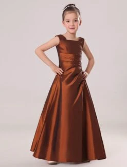 Flower Girl Dresses Ember Red A Line Square Neckline Taffeta Ankle Length Toddler’s Dinner Dress