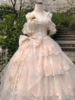 Sweet Lolita Wedding Dress Polyester Sleeveless Hime Lolita Wedding Dress Adjustable Elastic