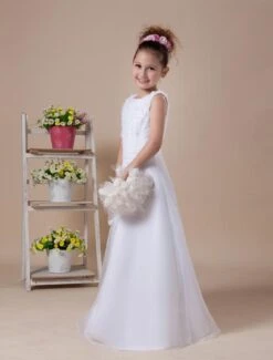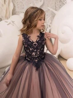 Wedding Flower Girl Dress Lace Sleeveless Floor Length Princess Kids Formal Party Dresses