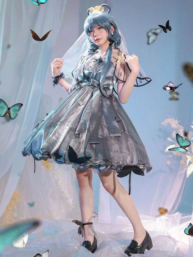 Be the first to review “Sweet Lolita Dress 4-Piece Set Polyester Short Sleeves Ruffles Bows Gray Lolita Outfit” Cancel reply