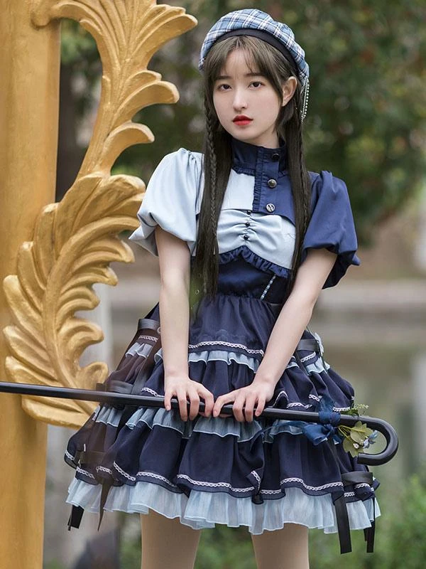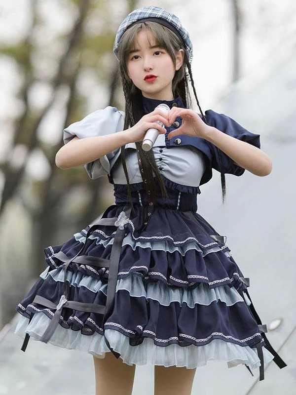 Be the first to review “Sweet Lolita JSK Dress 2-Piece Set Blue Navy Two Tone Pattern Ruffles Jumper Skirt Overcoat Idol Lolita Dress” Cancel reply