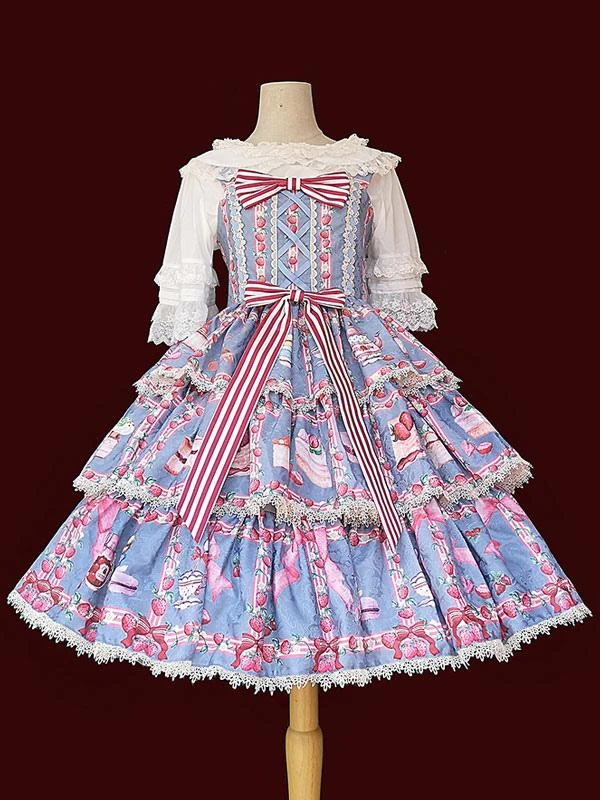 Be the first to review “Sweet Lolita JSK Dress Cotton Sleeveless Ruffles Strawberry Print Pattern Lolita Jumper Skirt” Cancel reply