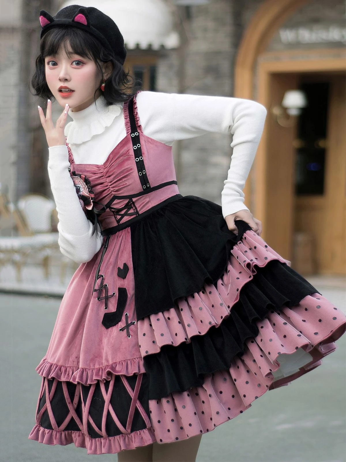 Be the first to review “Sweet Lolita JSK Dress Watermelon Red Polyester Sleeveless Polka Dot Nets Tiered Lolita Jumper Skirts” Cancel reply