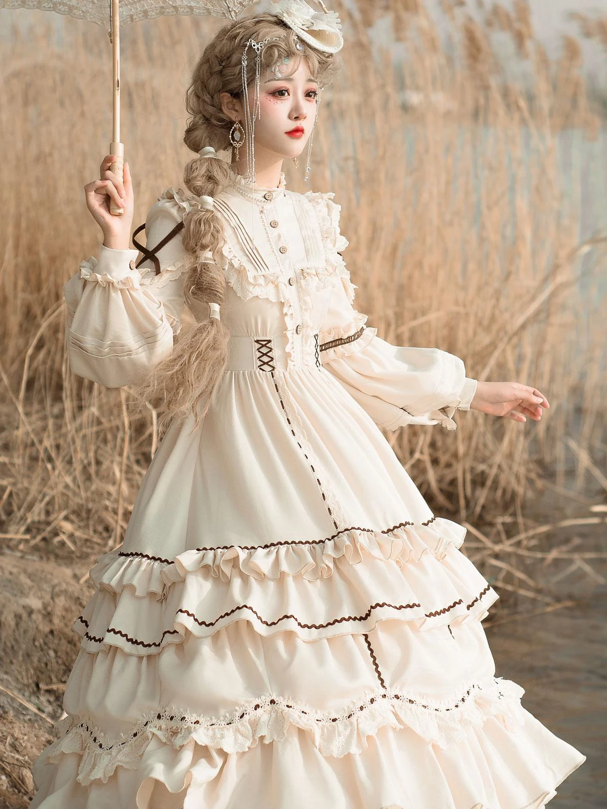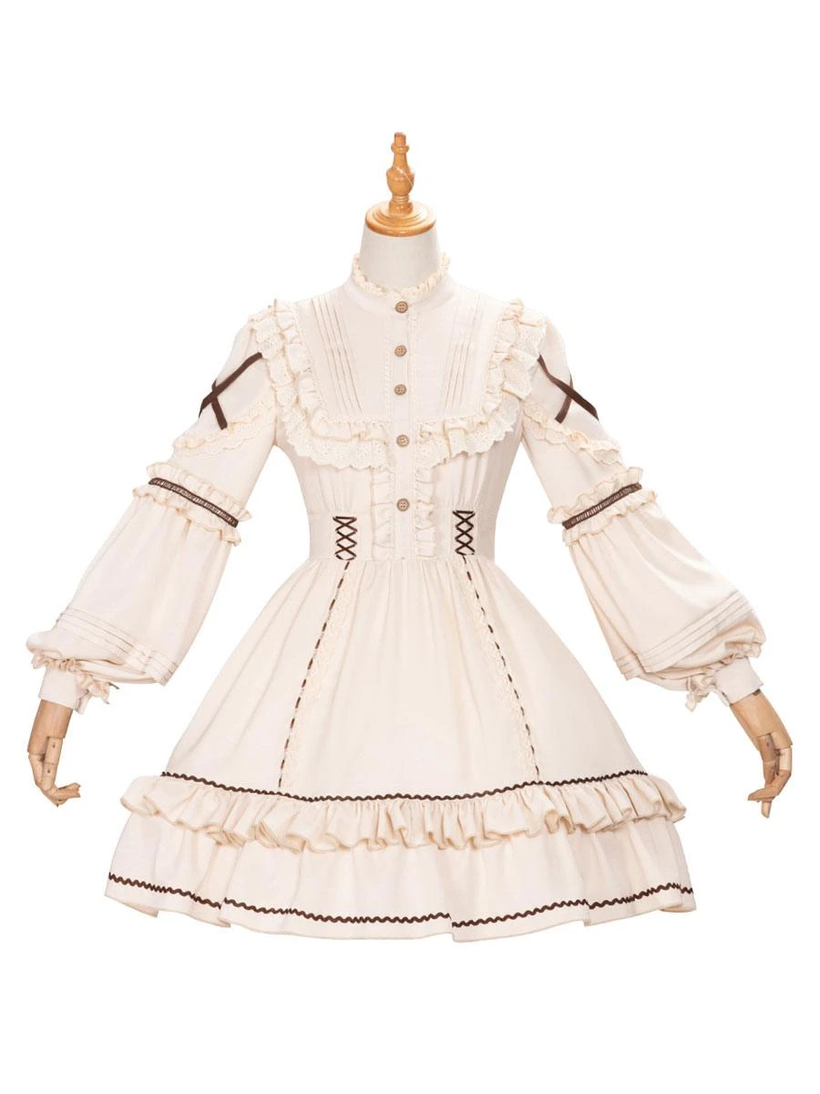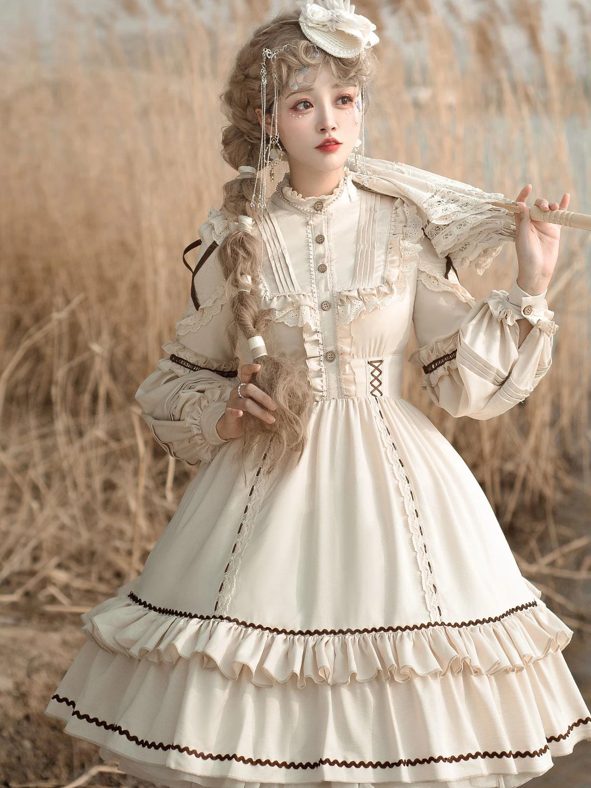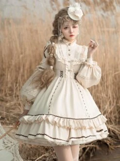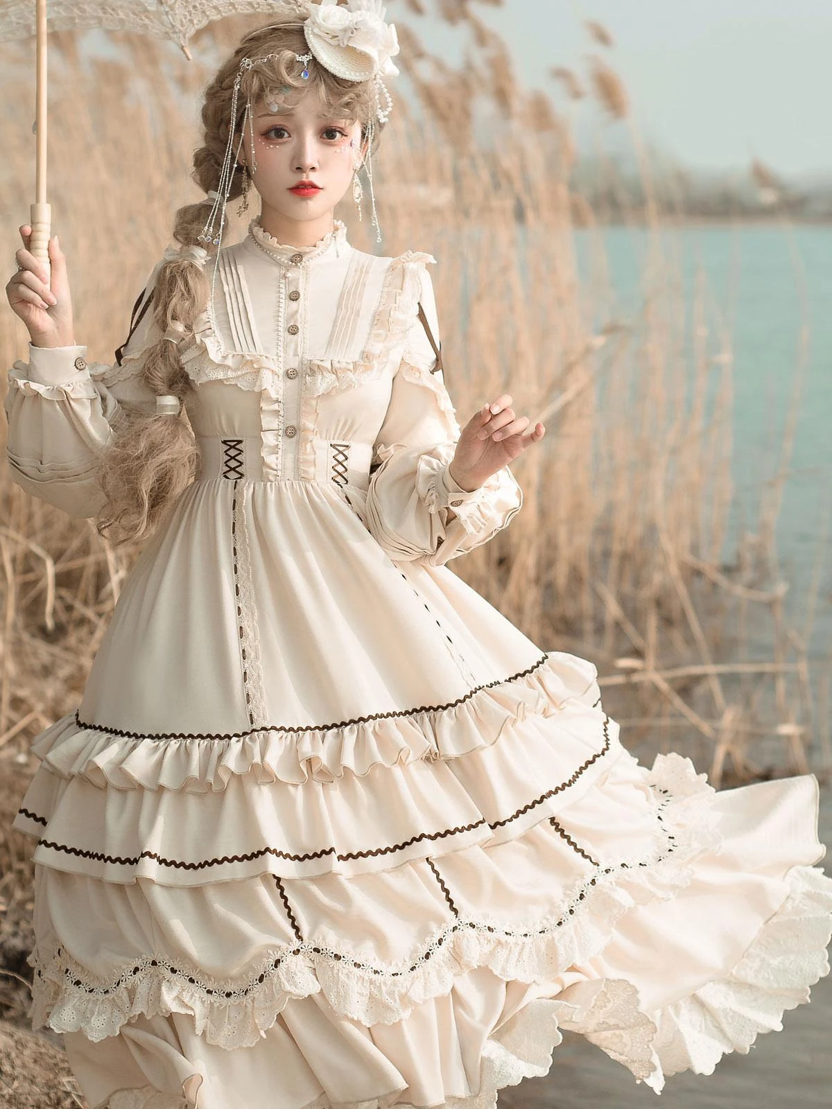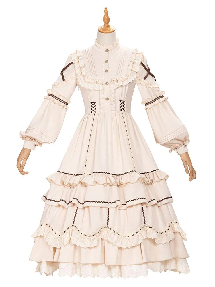 Be the first to review “Sweet Lolita OP Dress Light Apricot Polyester Long Sleeves Cascading Ruffles Lace Up Criss-Cross Lolita One Piece Dress” Cancel reply