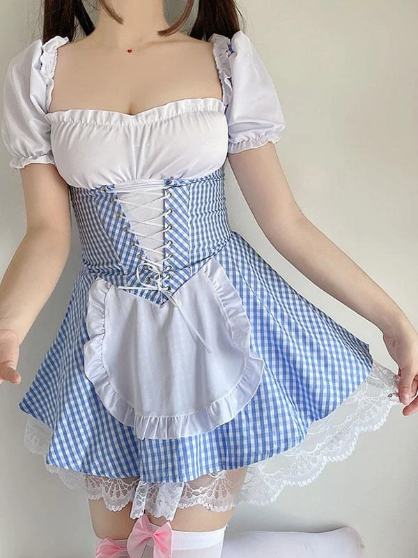 Lolitashow Wine White Lolita OP Dress Short Sleeves Withe Ruffles