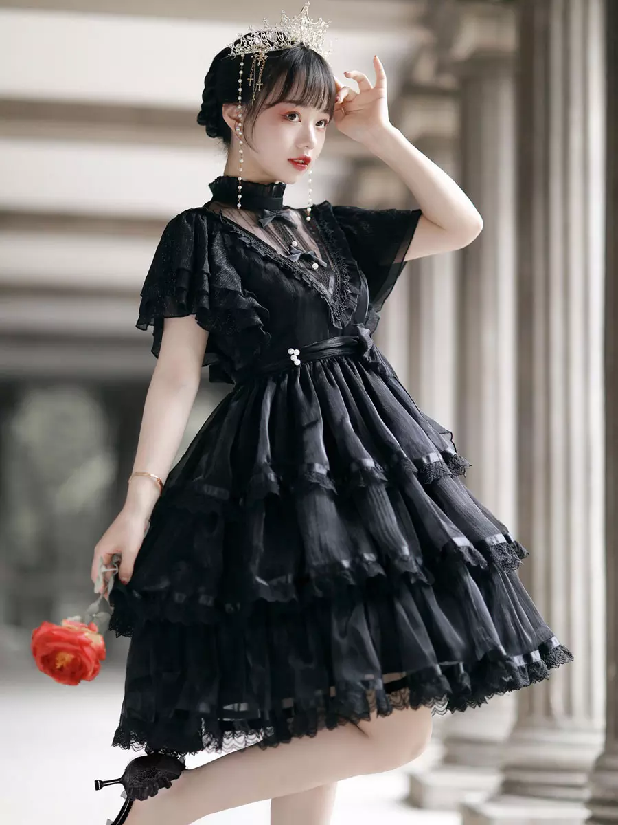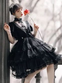 Be the first to review “Sweet Lolita OP Dress Polyester Short Sleeves Ruffles Bows Lace White Lolita One Piece Hime Dress” Cancel reply