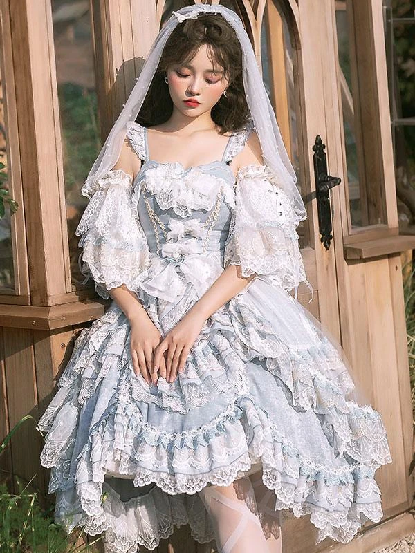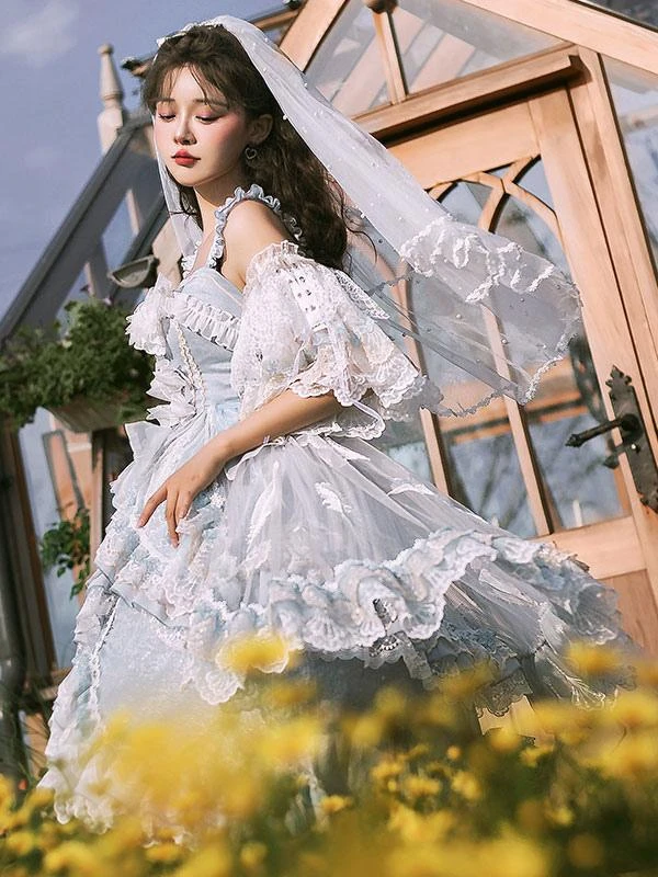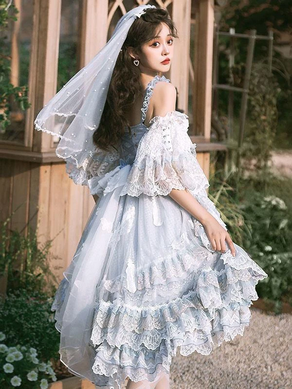 Be the first to review “Sweet Lolita Wedding Dress Sleeveless Butterfly Pearls Bows Lace Sky Blue Hime Lolita Wedding Dress” Cancel reply