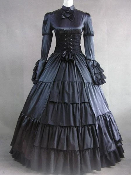 Be the first to review “Victorian Dress Costume Prom Dress Black Satin Ruffle Long Sleeves Victorian Era Outfits Retro Costumes Halloween” Cancel reply