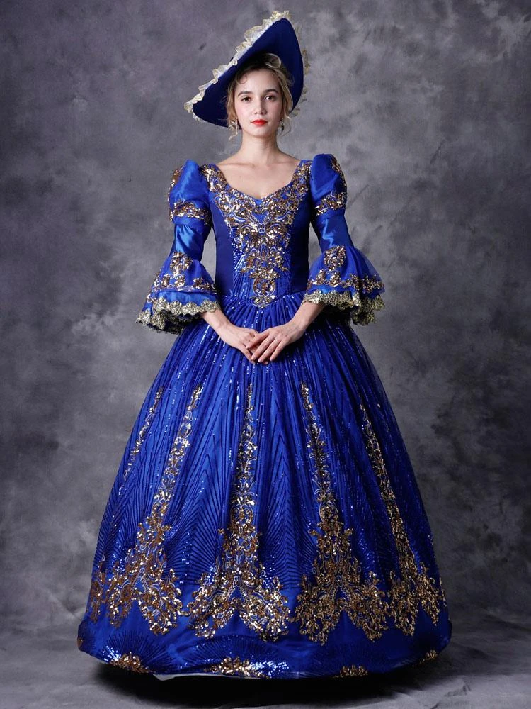 Be the first to review “Victorian Dress Costume Prom Dress Royal Blue Half Sleeves Baroque Masquerade Ball Gowns With Hat Royal Victorian Era Clothing Retro Costume Halloween” Cancel reply