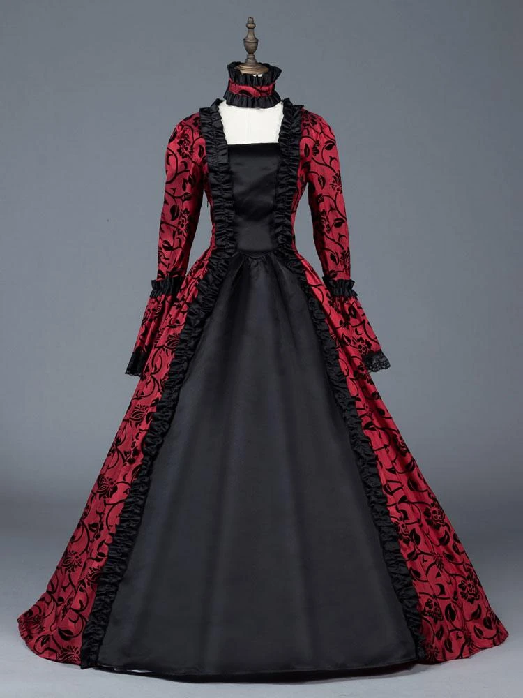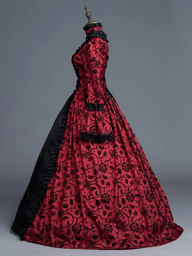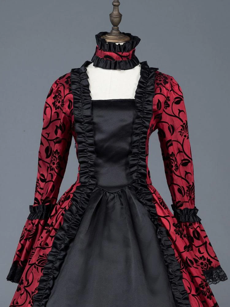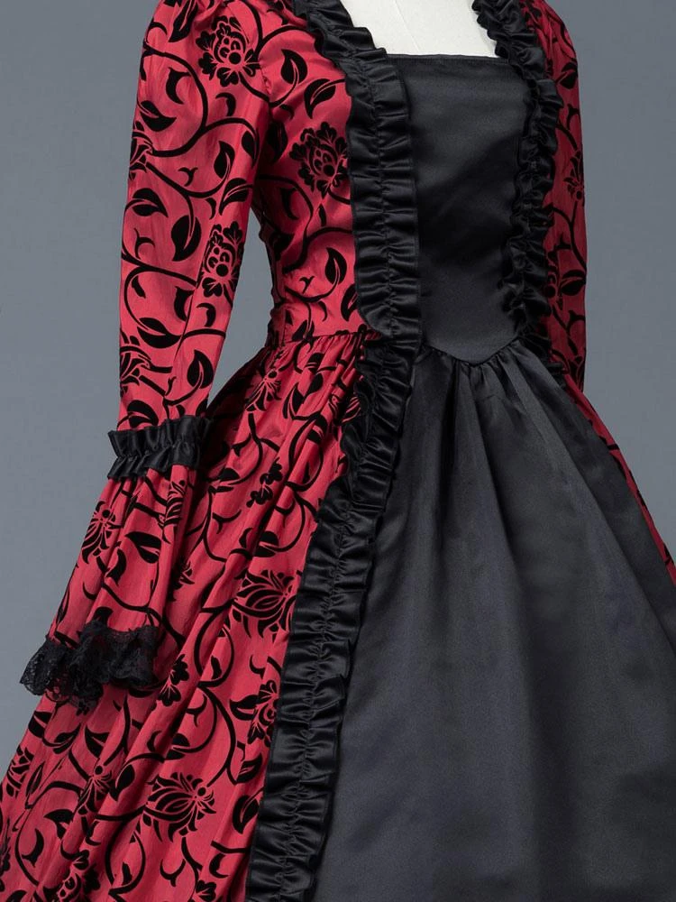 Be the first to review “Victorian Dress Costume Women’s Red Bow Floral Print Square Neckline Long Sleeves Matte Satin Dress Victorian Era Style Ball Gown Halloween” Cancel reply