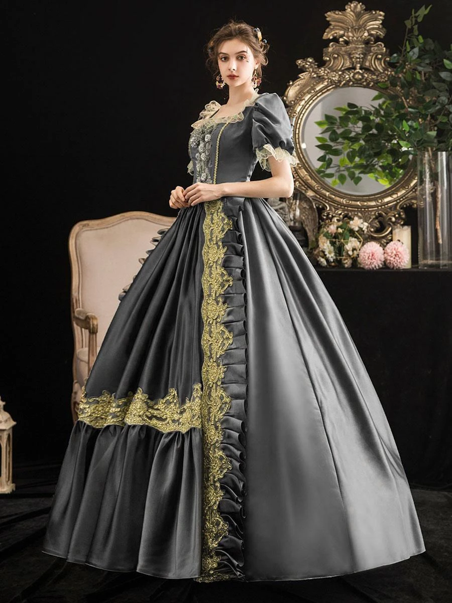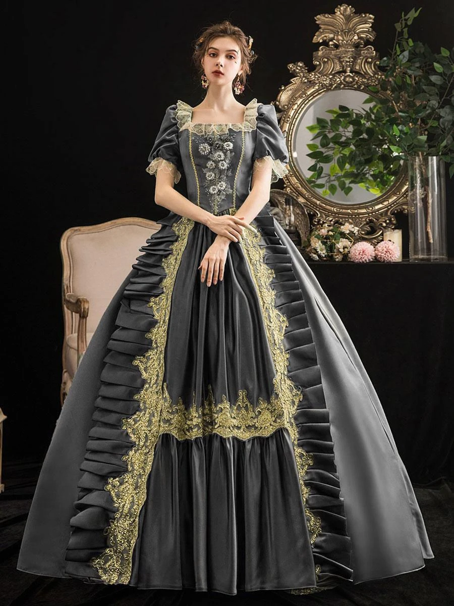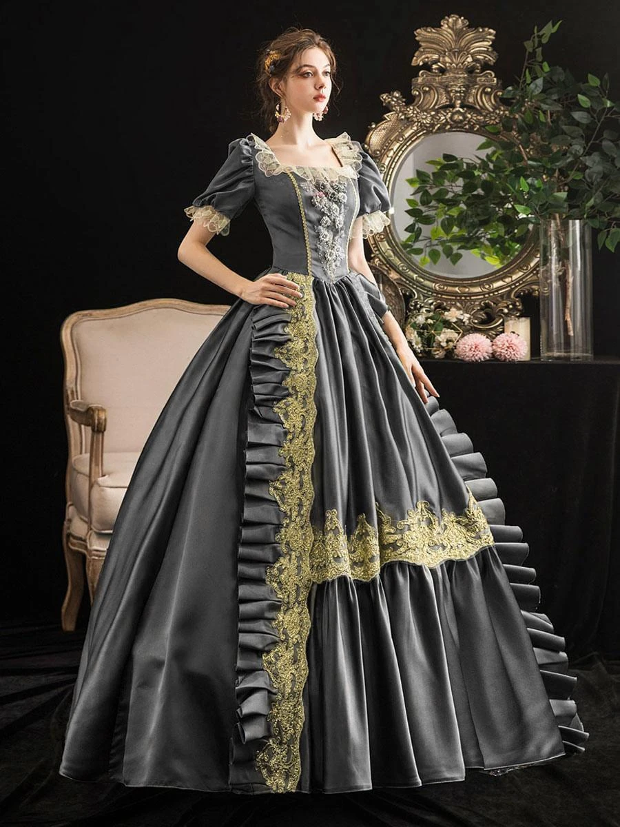 Be the first to review “Victorian Dress Costumes Prom Dress Grey Retro Costumes Short Sleeves Square Neckline Lace Floral Marie Antoinette Rococo Dress” Cancel reply