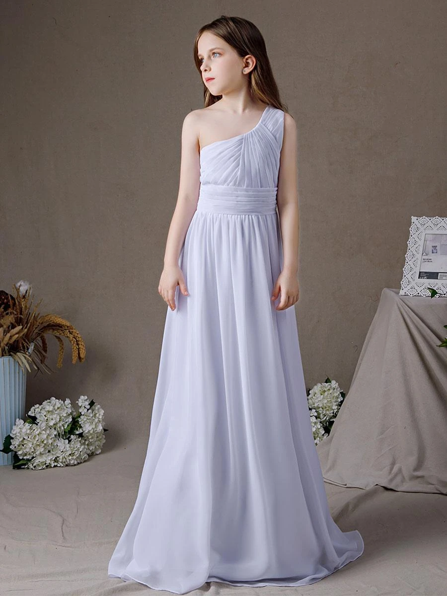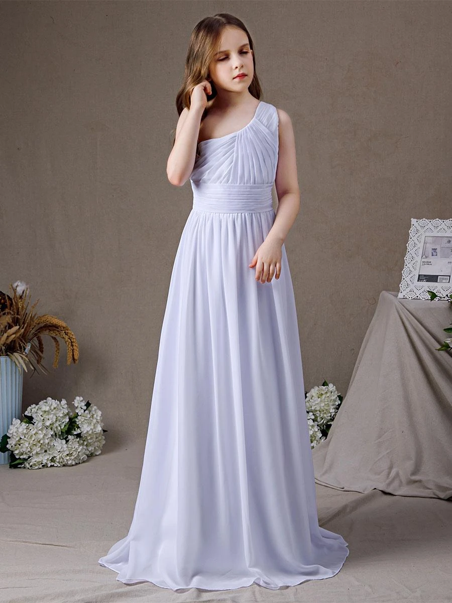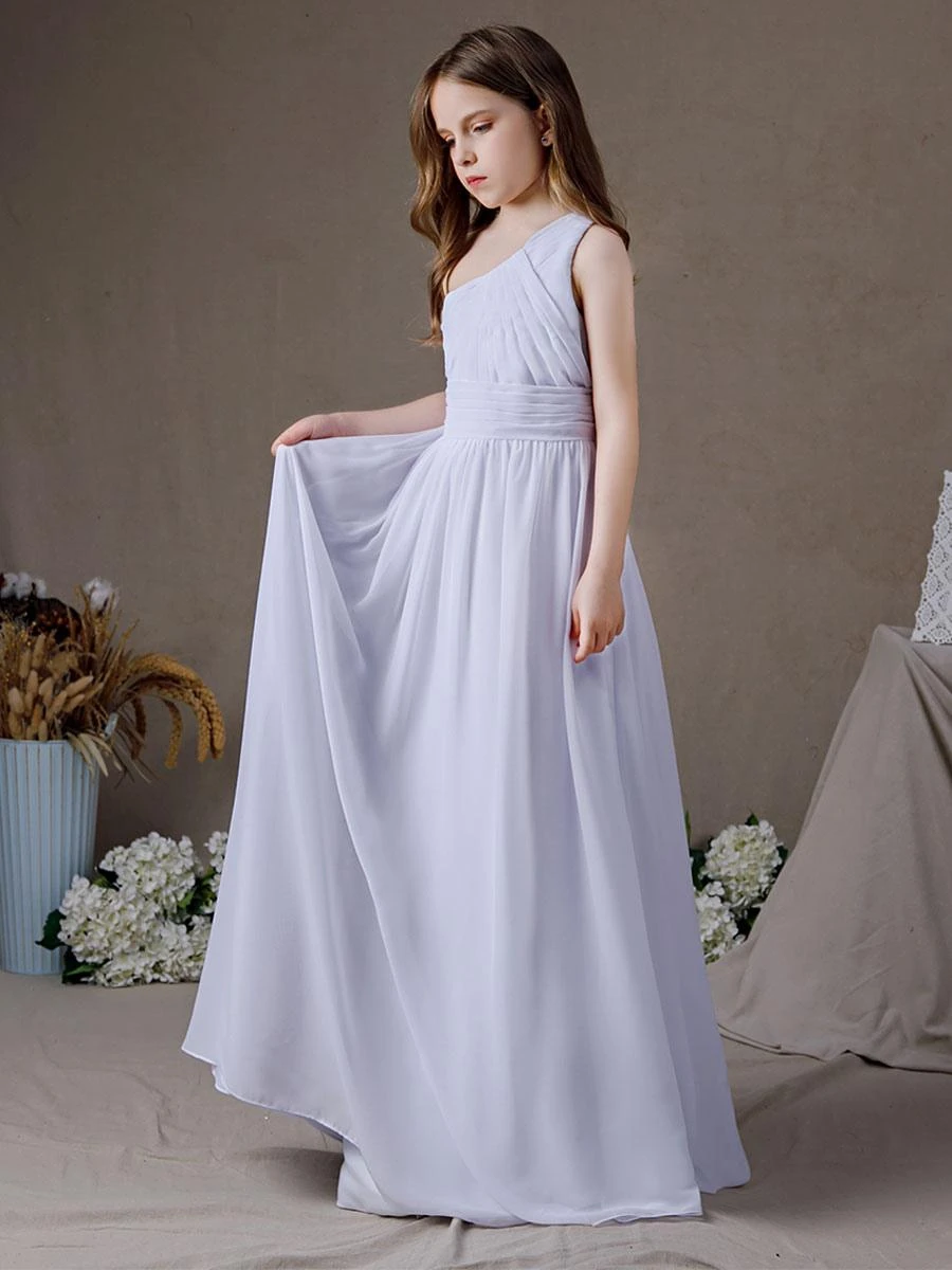 Be the first to review “White Flower Girl Dress Chiffon Pleated One-Shoulder Sleeveless Kids Birthday Party Dresses” Cancel reply