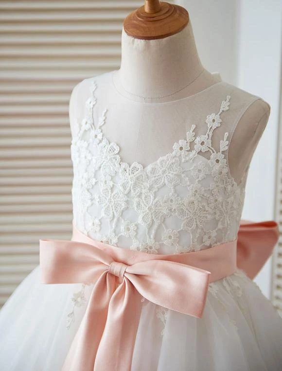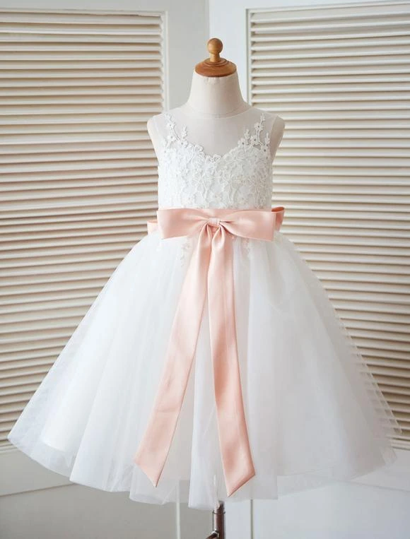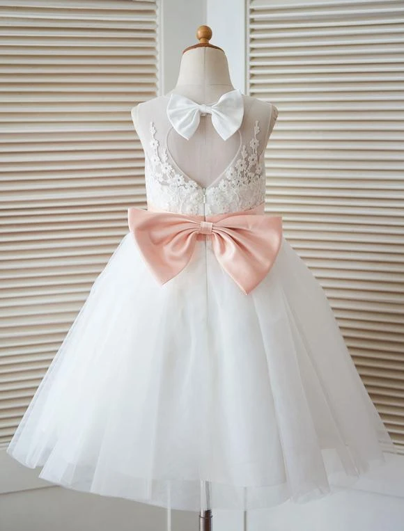 Be the first to review “White Flower Girl Dress Princess Satin Bow Lace Sleeveless Tulle Tea-Length Pageant Dress” Cancel reply