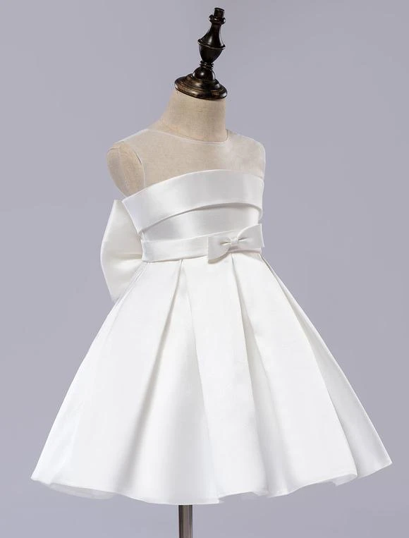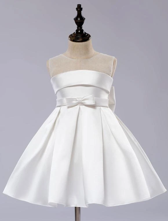 White Flower Girl Dresses Jewel Neck Sleeveless Bows Kids Party Dresses Short Princess Dress