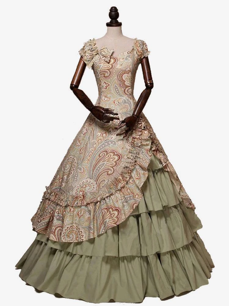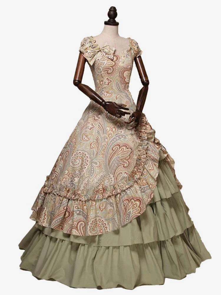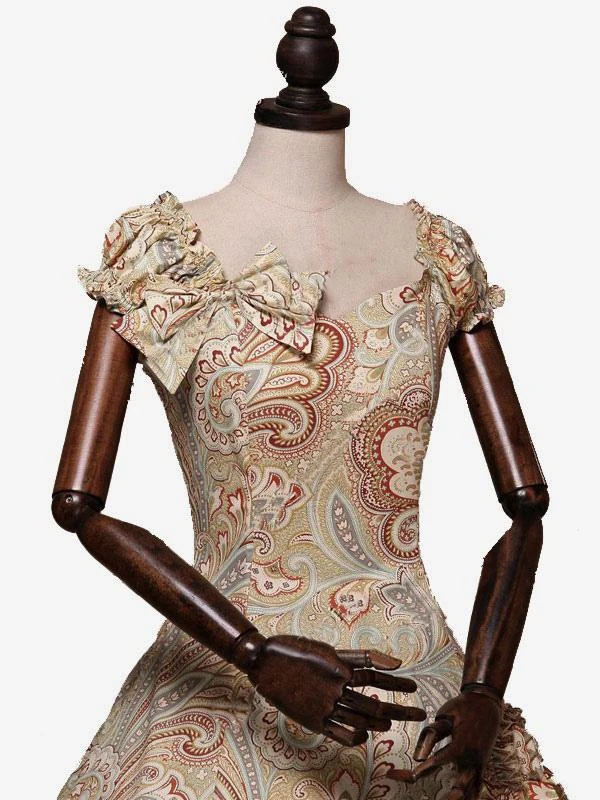 Be the first to review “Women Retro Costumes Prom Dress Print Dress Bow Ruffle Short Sleeves Round Neckline Gown Victorian Era Clothing Costume” Cancel reply